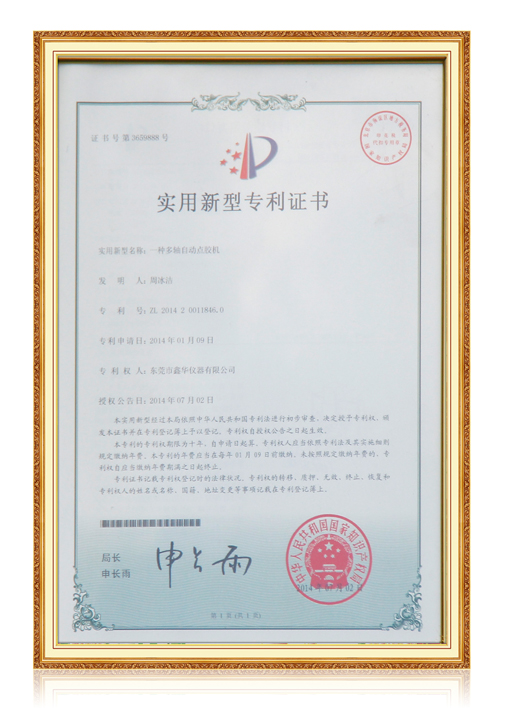 多軸自動(dòng)點(diǎn)膠機(jī)證書