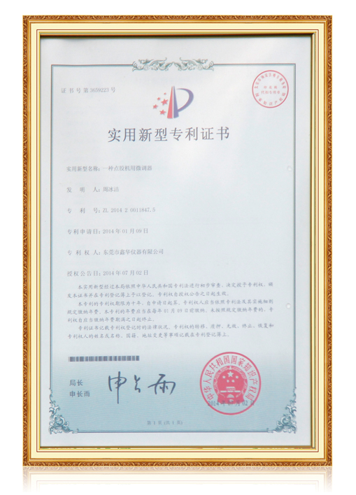 點(diǎn)膠機(jī)用微調(diào)器證書