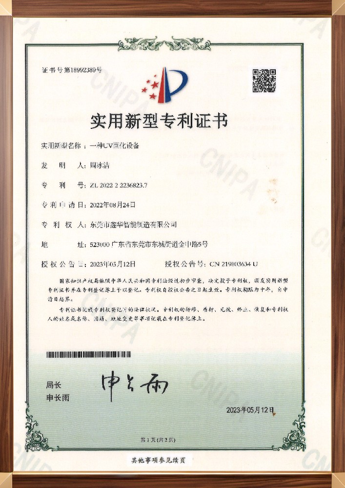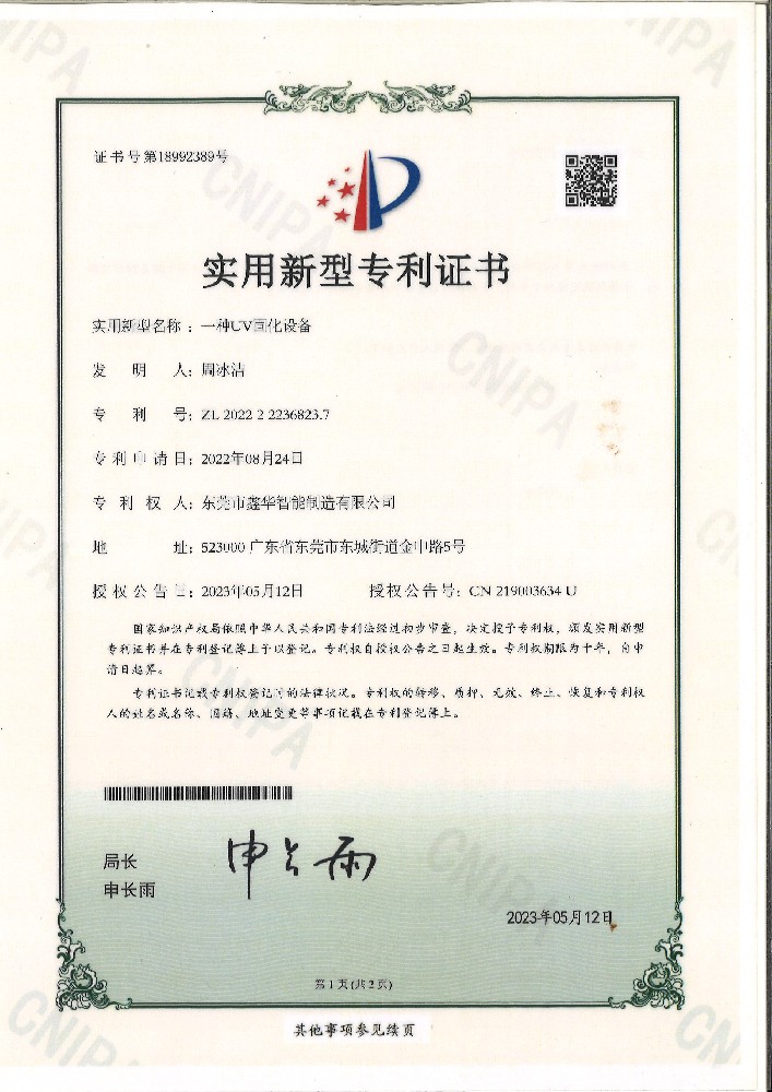 一種UV固化設(shè)備證書