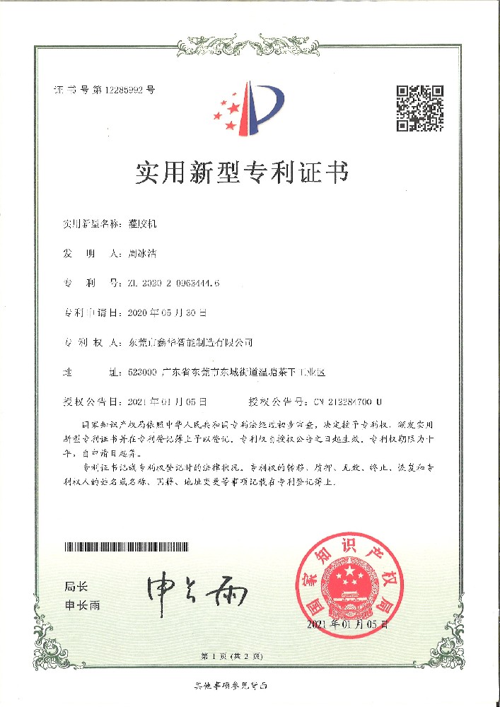 灌膠機(jī)證書