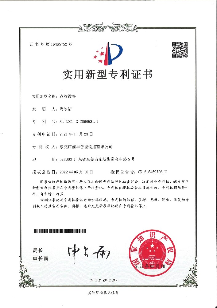 點(diǎn)膠閥機(jī)點(diǎn)膠機(jī)裝置證書
