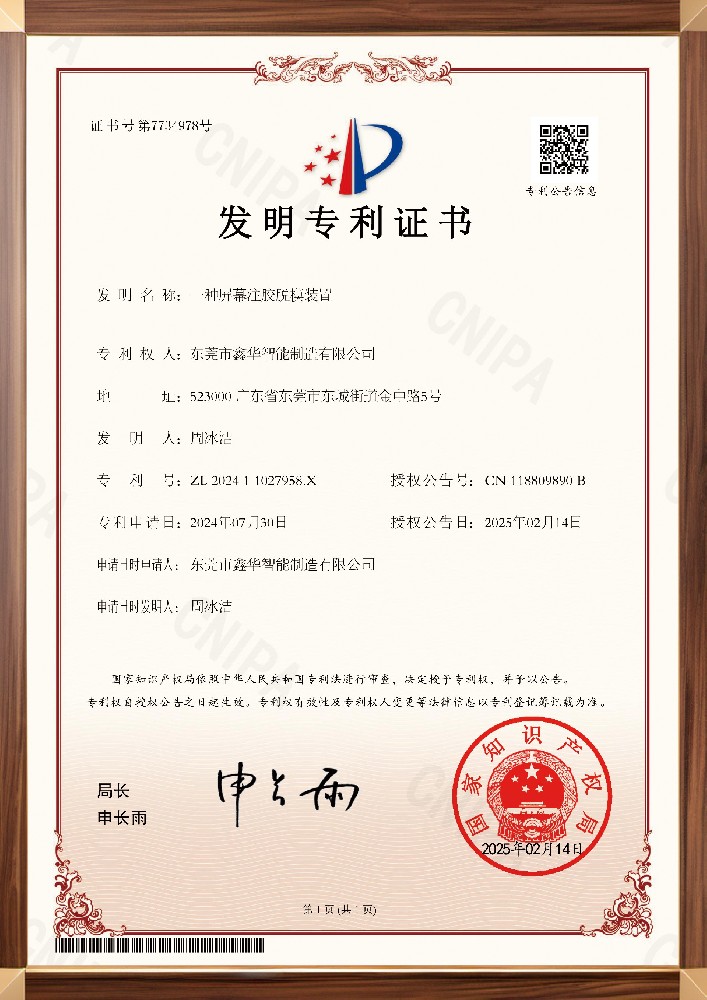 灌膠機(jī)專利證書