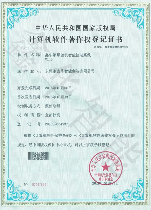 鎖螺絲機(jī)控制系統(tǒng)著作權(quán)