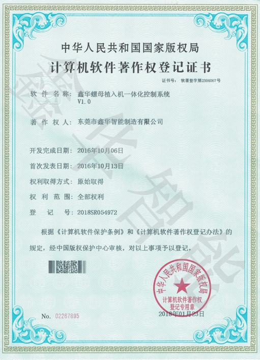 螺母植入機(jī)控制系統(tǒng)著作權(quán)