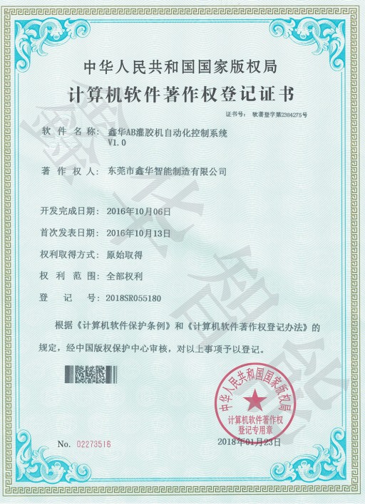 點(diǎn)膠機(jī)軟件證書